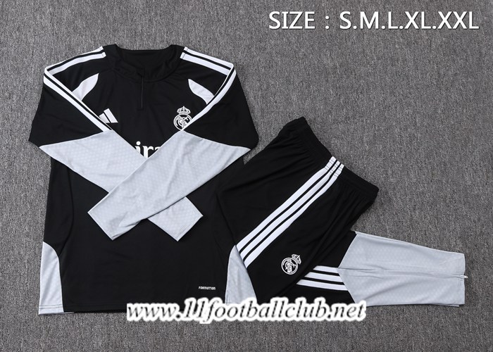 Ensemble Survetement de Foot Real Madrid Noir/Gris/Blanc 2026/2027