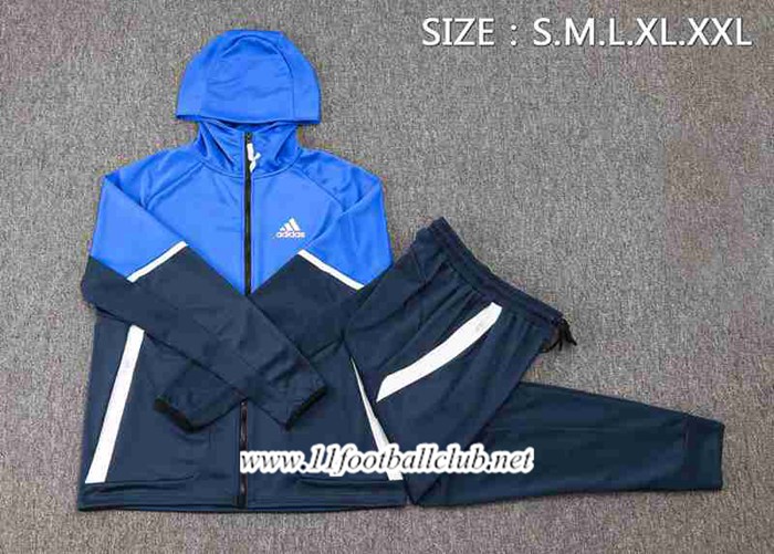 / Ensemble Survetement Veste A Capuche Coupe-Vent Adidas Bleu 2023/2024 -02